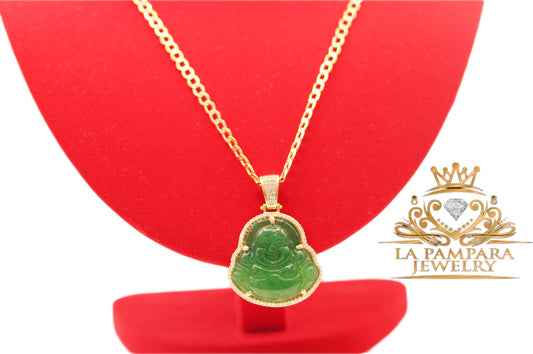 Cuban chain green Budda 14k Real Gold