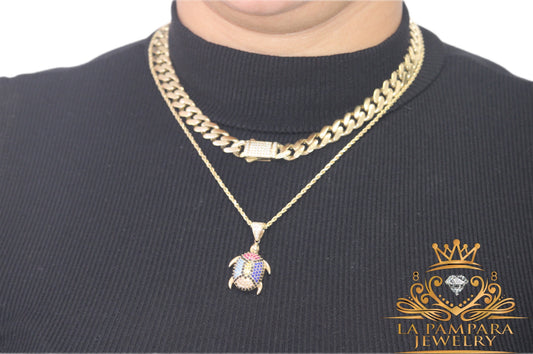 Cuban link chain pendant 14k real gold