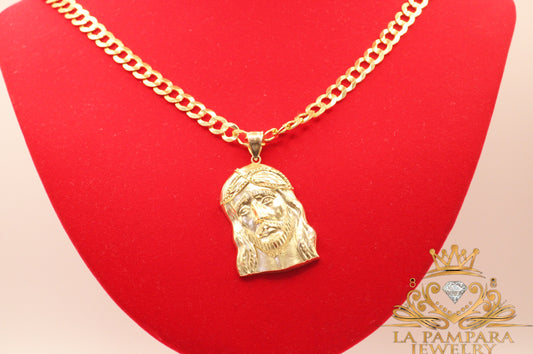 Cuban chain Jesus face medium 14k