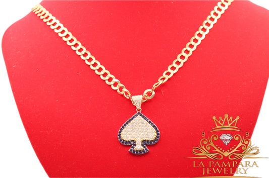 Cuban chain blue ice card pendant 14k gold