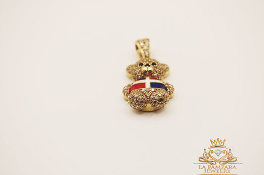 Dominican flag bear pendant 14k